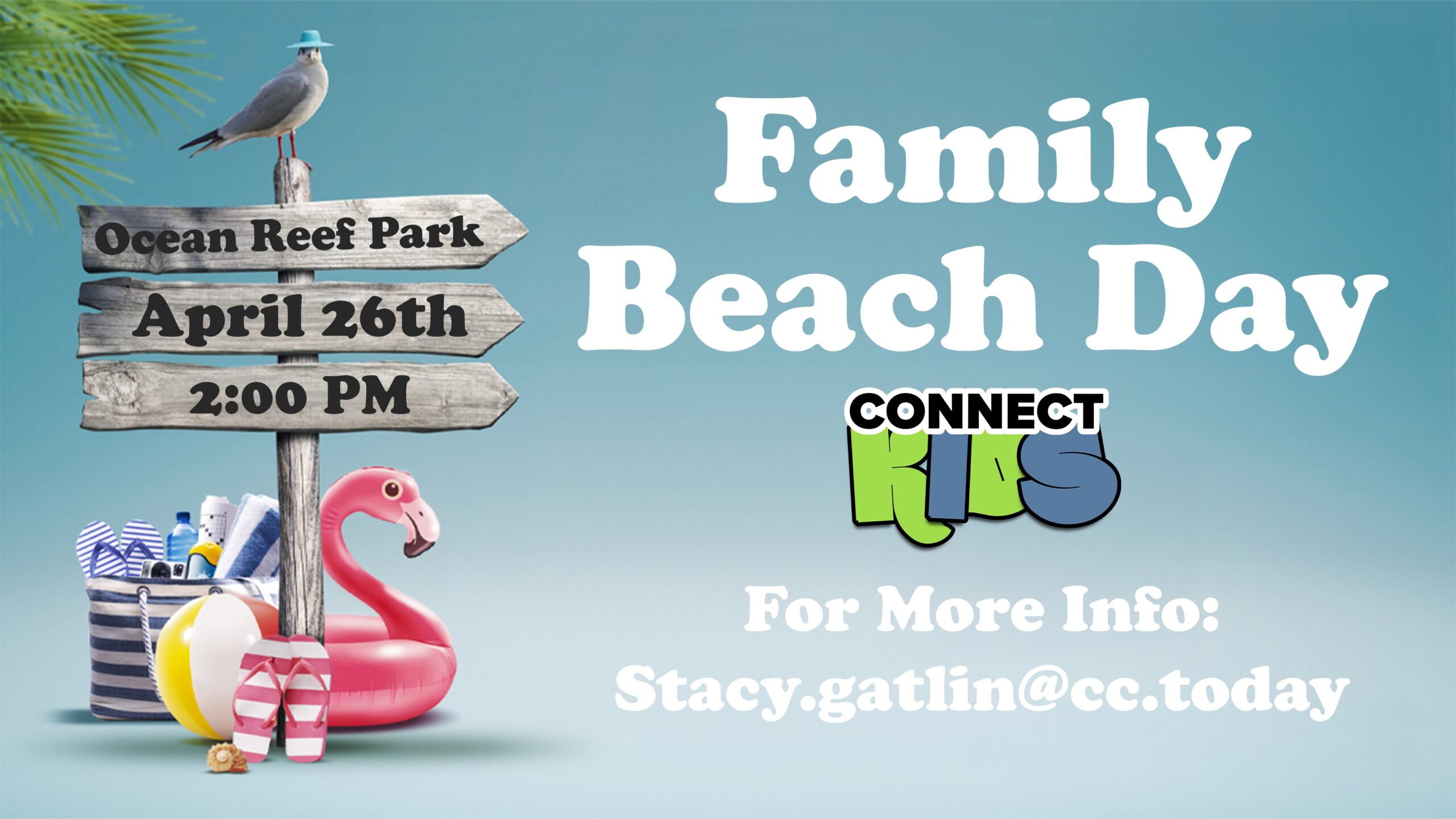 Join us for a Family Beach Day at Ocean Reef Park on April 26 from 2-4 pm, before the beach baptism at 4:00 pm. Pack your coolers and beach blankets for an afternoon of fun as we prepare to watch the baptisms. Please contact the church office if you are interested in getting baptized.